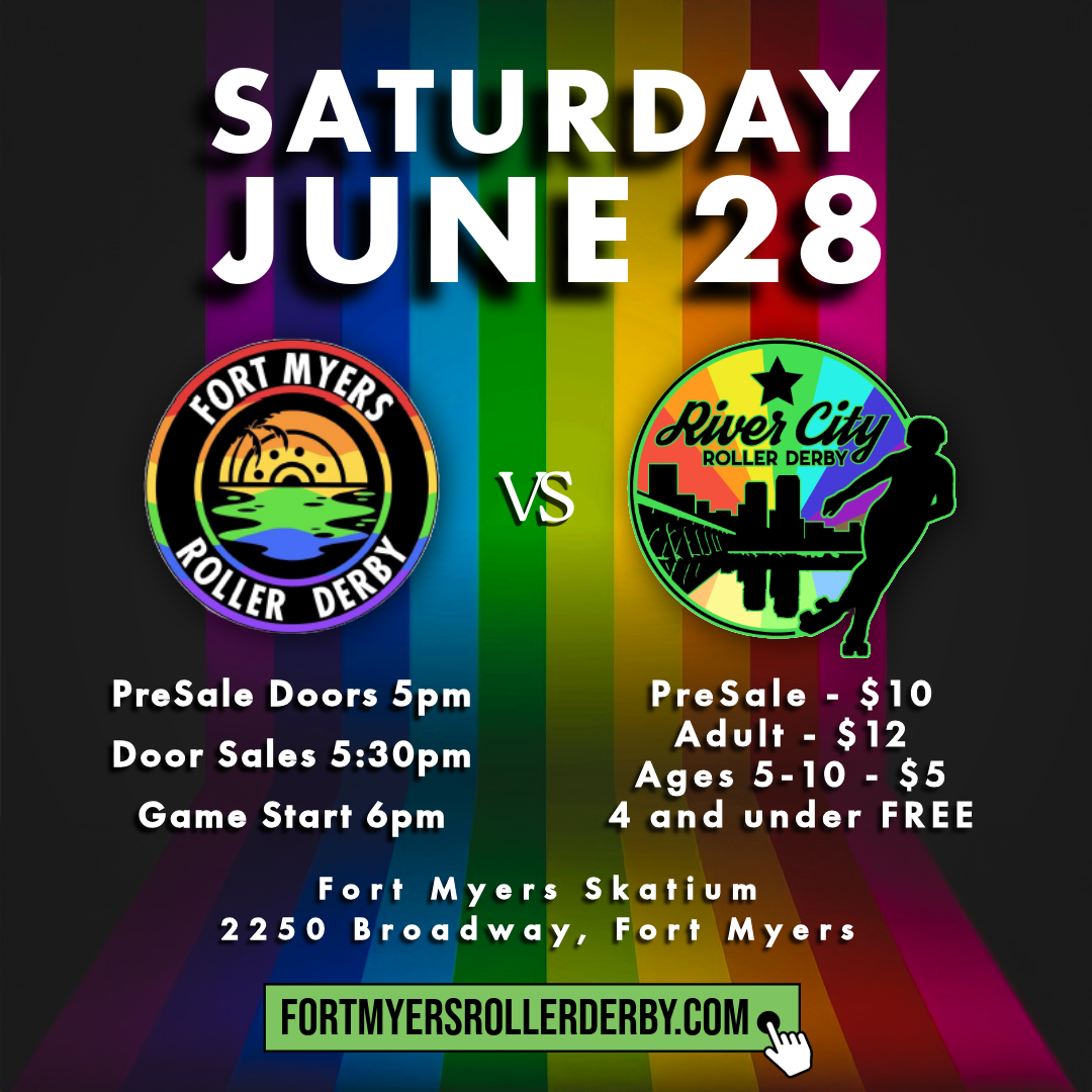 The game will be at Ft Myers Skatium located at 2250 Broadway in Downtown Fort Myers. Doors open at 5:30pm. Bout starts at 6pm.